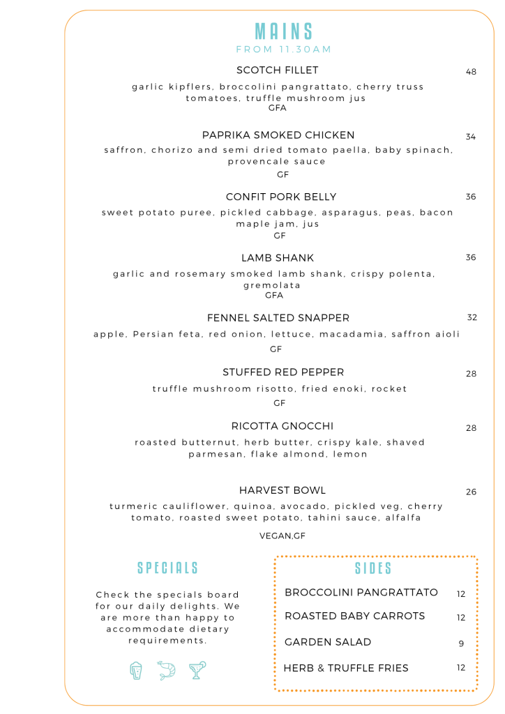From breakfast, lunch, happy hour, dinner and everything in between, our restaurant represents a harmonious blend of modern Australian cuisine infused with the vibrant flavours of the world. Our menu is crafted with the best local produce we can get our hands on. It’s a celebration of culinary innovation, it’s fresh, it’s flavourful. it’s deep rooted in tradition and the spirit of bringing people together.